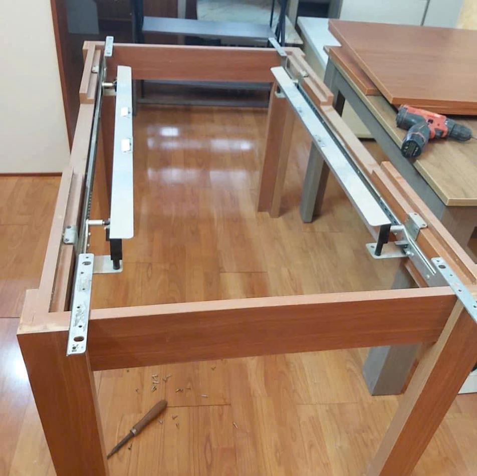 Thiết kế thông minh: Ray trượt được thiết kế tinh tế, cho phép mở rộng hoặc thu gọn mặt bàn dễ dàng, giúp tiết kiệm không gian khi không sử dụng.